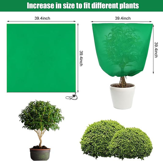 ANPHSIN 3 pcs Plant Covers Freeze Protection, 39.3in x 39.3in Shrub Tree Plant Protection with Drawstring, Frost Cloth Wraps Blanket Freeze Bags for Winter Outdoor Garden Potted Plants Green