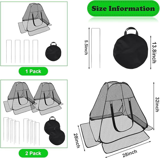 RGQSUN 2 Pack 28 x 28 x 32 Inch Pop-up Gardening Net Cover,Pest Guard Cover with Zip Entry and 8 Stakes,Fine Mesh Plant Tents for Vegetables Fruits Flowers