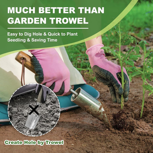 Haliaeetus Small Bulb Planter Tool, Sharp Edge Bulb Planter for Breaking Through Soil, Heavy Duty Stainless Steel Bulb Planter Tool, Small Bulb Digger with Comfortable Wood Handle for Seed Planting