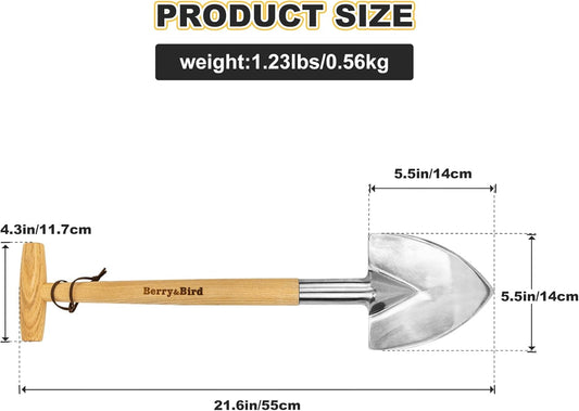 Berry&Bird Perennial Spade, 21.6''Long Trowel for Gardening Root Cutting Tool with Sharp Stainless Steel Blade, Wooden Handle Small Shovel Hand Edger Garden Tool for Planting, Digging & Transplanting
