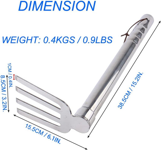 Stainless Steel Garden Cultivator Metal Hand Weather Resistant Hand Tool 15-Inch Lightweight 4 prongs Rake for Weeding Seeding Turning Soil
