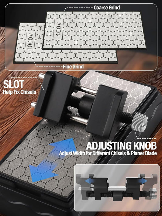 Diamond Sharpening Stones with Honing Guide, Kalolary Knife Sharpener Stone with Non-Slip Base for Chisels Planes Sharpening Stone Set Fine/Coarse Diamond Sharpening Plate with Angle Guide (400/1000)