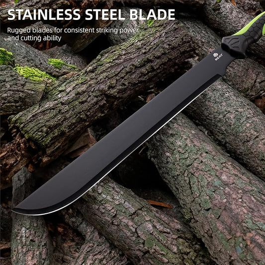 REAT Machete Heavy Duty with Sheath,24-inch Full Tang 420 Stainless Steel Blade,Non-silp Rubber Handle for Yard Work, Cutting Trees,Camping,Outdoor (Black)