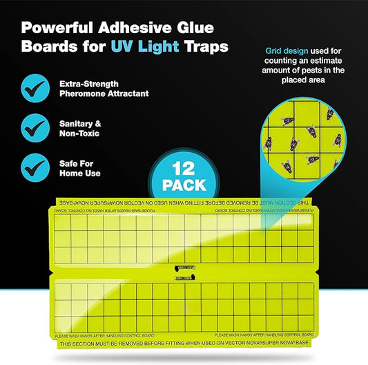 Catchmaster Vector Trap Replacement, UV Light Fly Traps for Home, Unscented Sticky Gnat Glue Boards for House, UV Lamp Insect & Mosquito Killer Refill, Adhesive Bug Light Boards, 12-Pack Yellow