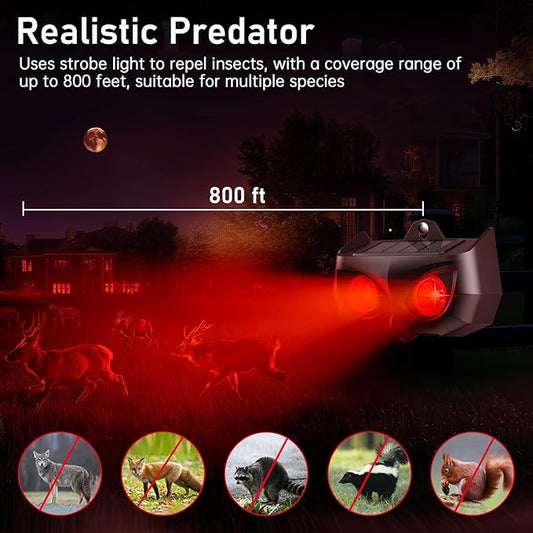 2025 Solar Nocturnal Animal Repeller,4 Pack Racoon Repellent Outdoor,Waterproof Deer Repellent Device,Wall-Mounted Red Flashing Light, Skunk Fox Coyote Deterrent for Chicken Coop Garden Yard