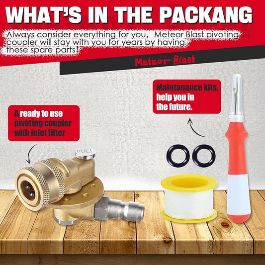 Meteor Blast Pivoting Coupler, 270 Degree with 7 Angles, heavy duty design and Stainless Steel Safety Lock for Pressure Washer Spray Nozzle, Clean Hard to Reach Area, 5000PS