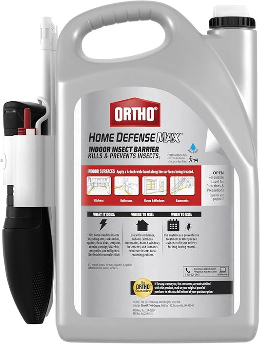 Ortho Home Defense Max Indoor Insect Barrier Refill, Kills Ants, Roaches, Spiders, Fleas and Ticks, 1 gal. with Comfort Wand and Refill