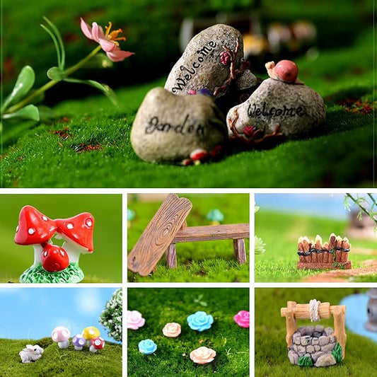 Kai Dream Fairy Garden Accessories, Fairy Garden Kit, 118 Pieces of Miniature Decor: Mushrooms, Bridge, Steps, Moss, Furniture Figurines, Fake Fence, Flowers, and Blue Crystal Gravel