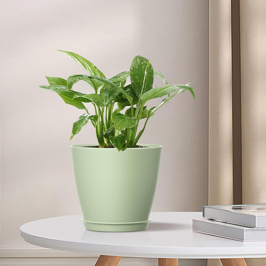 16 Pack 4 Inch Plant Pots with Drainage Holes and Saucers, Pots for Plant Indoor, Plastic Planters for Succulents and Small Plants, Green