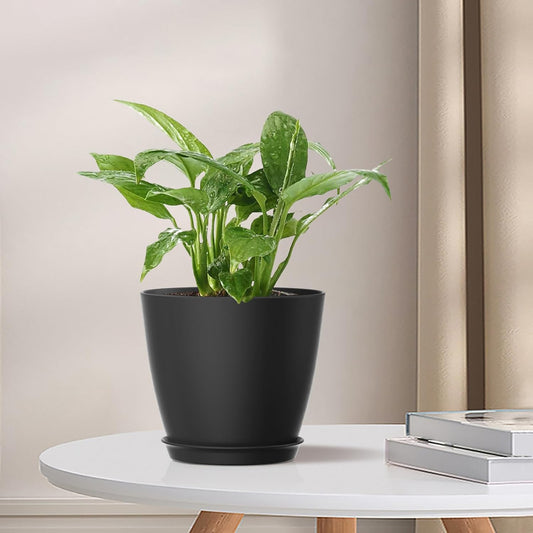 16 Pack 4 Inch Plant Pots with Drainage Holes and Saucers, Pots for Plant Indoor, Plastic Planters for Succulents and Small Plants, Black
