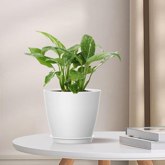 16 Pack 4 Inch Plant Pots with Drainage Holes and Saucers, Pots for Plant Indoor, Plastic Planters for Succulents and Small Plants, White
