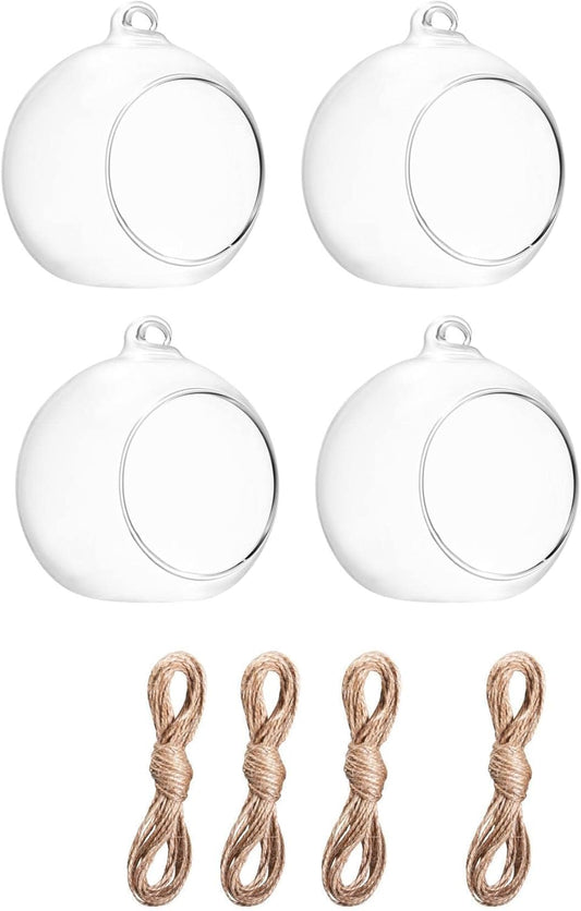 Hanging Glass Candle Holder, Globe Tea Light Holder, Hanging Vase, Flower Plants Terrarium, Glass Orbs Container, Micro Landscape DIY for Home, Office, Wedding (4" 4Pcs)