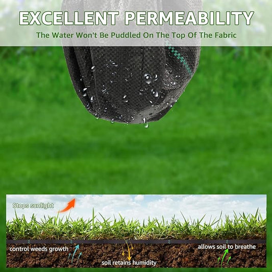 Heavy Duty Weed Barrier Fabric 3ft x 50ft, Landscape Ground Cover for Gardens & Driveways, Premium Weed Control with 10 U Shaped Staples