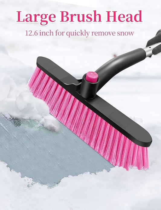 HEEYA 12.6 Inch Large Brush Head with Ice Scraper, Extendable Car Scraper Snow Brush for Car Window Windshield, Portable Snow Scraper for SUV Truck Vehicle Automobile - Pink