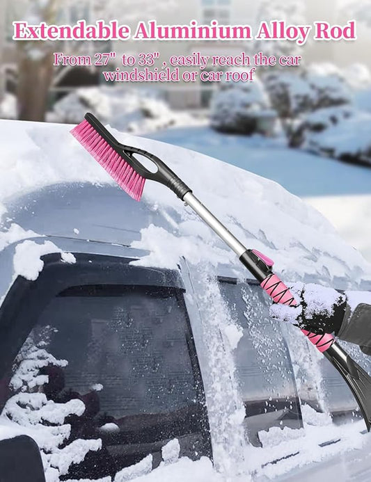 HEEYA 27 Inch Ice Scraper and Brush for Car, Snow Brush and Ice Scraper with Foam Grip, Detachable Snow Scraper for SUV Truck Jeep Vehicle Auto Windshield Window - Pink