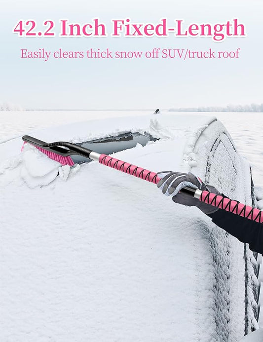 HEEYA 42.2 Inch Ice Scraper and Brush for Car, Snow Brush and Ice Scraper for Windshield Window, Car Snow Scraper with Foam Grip for SUV Truck Jeep Vehicle - Pink