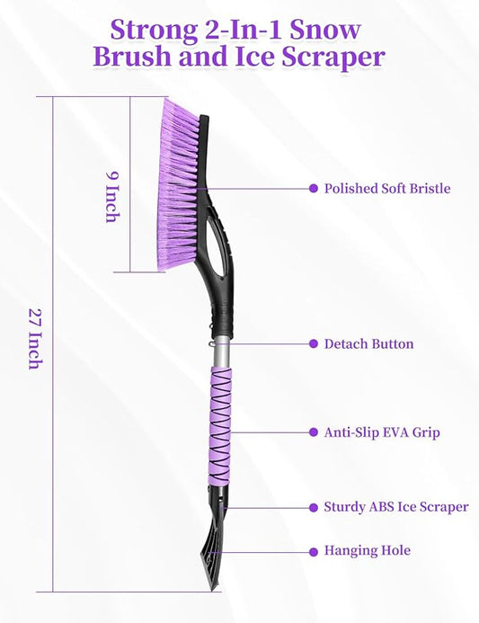 HEEYA 27 Inch Ice Scraper and Brush for Car, Snow Brush and Ice Scraper with Foam Grip, Detachable Snow Scraper for SUV Truck Jeep Vehicle Auto Windshield Window - Purple