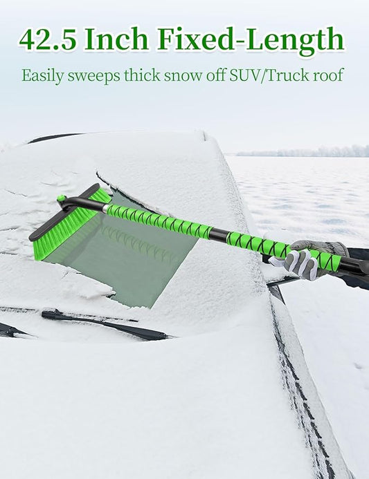 HEEYA 42.5 Inch Car Scraper Snow Brush, 12.6 Inch Large Brush Head with Ice Scraper for Window Windshield, Portable Snow Scraper for SUV Truck Vehicle Jeep RV Auto - Green