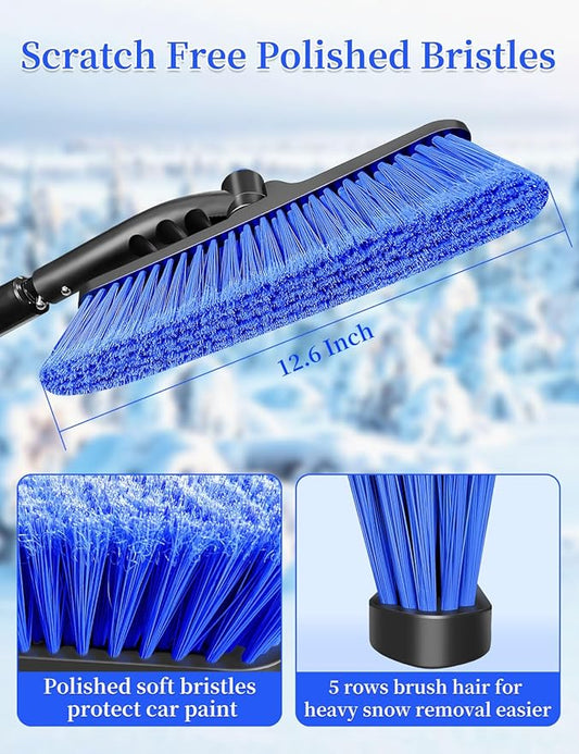 HEEYA 42.5 Inch Car Scraper Snow Brush, 12.6 Inch Large Brush Head with Ice Scraper for Window Windshield, Portable Snow Scraper for SUV Truck Vehicle Jeep RV Auto - Blue