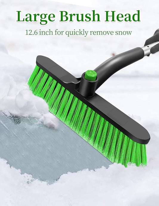 HEEYA Car Ice Scraper with 12.6 Inch Large Brush Head, Snow Brush and Ice Scraper for SUV Windshield Window, Extendable Snow Scraper for Truck Automobile Vehicle - Green