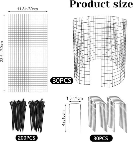 10 Packs 12" x 12" Wire Plant Protectors Wire Plant Cages Metal Mesh Plant Cage Chicken Wire Cloche with Ground Stakes and Nylon Ties Protect Plants,Garden,Shrubs and Vegetables from Animals-30 PCS