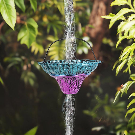 10FT Rain Chains for Outside, Rain Gutter Chain with 12 Flower Cups, Adjustable Rainwater Catcher Chain for Eaves Drainage, Replacement for Downspout