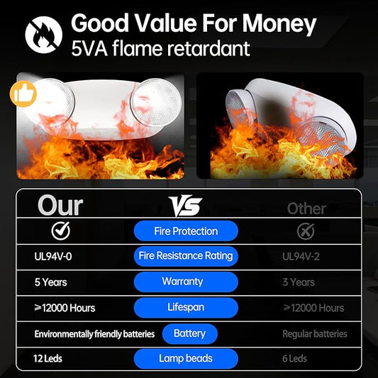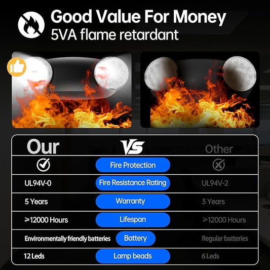 1 Pack Commercial Emergency Light with Battery Backup, Emergency Lights for Business-Hard Wired, UL 924 Certified,AC 120/277V,Two Head Adjustable LED Emergency Lighting.