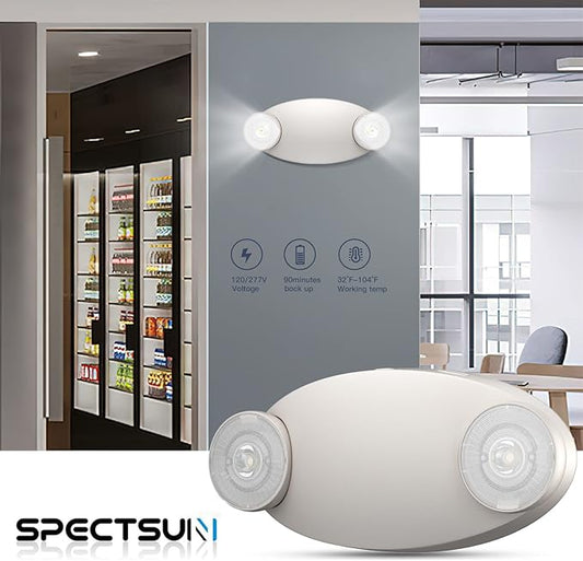 1 Pack LED Emergency Lighting with Battery Backup - Two Square Heads White Commercial Emergency Lights -UL Listed-AC 120/277V-Hardwired Emergency Exit Light Fixtures for Business.