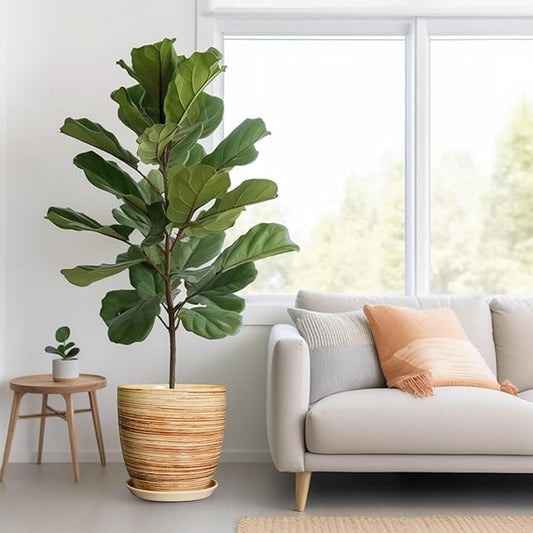 12 Inch Planter Pot Ceramic Plant Pots for Plants with Drainage Hole and Saucer Large Flower Pot for Home Patio Garden Office Yellow