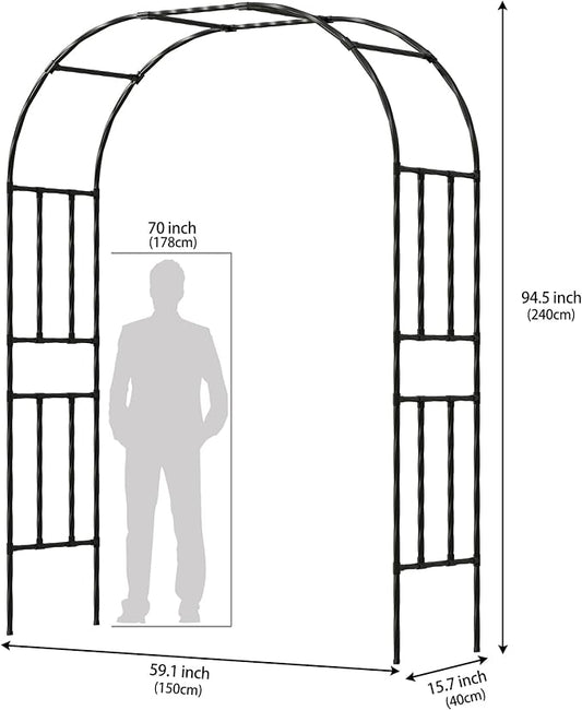 Twira Garden Arch Trellis, 7.9FT(240cm) Metal Garden Arbor Trellis for Climbing Plants Outdoor, Large Wedding Arch for Ceremony, Black Archway Trellises Decoration for Lawn, Patio, Backyard