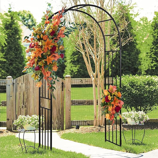Twira Garden Arch Trellis, 7.9FT(240cm) Metal Garden Arbor Trellis for Climbing Plants Outdoor, Large Wedding Arch for Ceremony, Black Garden Archway Trellises Decoration for Lawn, Patio, Backyard
