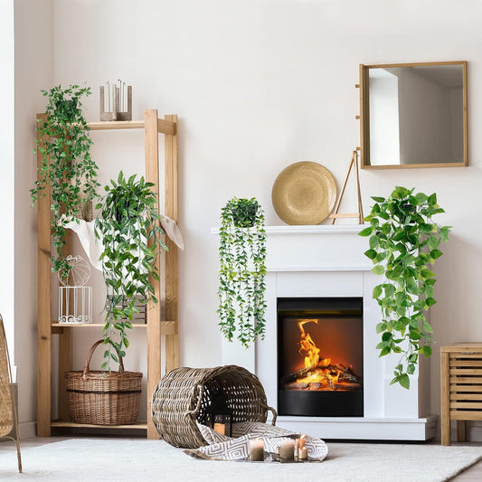 Sggvecsy Fake Hanging Plants 4 Pack Artificial Hanging Eucalyptus Plants Fake Potted Greenery Faux Eucalyptus Mandala Vine Ivy Vine Leaves Pea Pod for Home Indoor Outdoor Wall Garden Decor