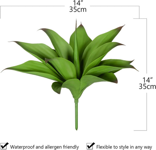 Velener Artificial Plant Outdoor Agave - Small Size UV Resistant Fake Agave Plants for Indoor and Outdoor Decor(14 Inch)-2 Pack