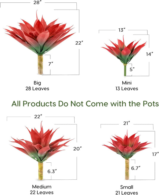Artificial Agave Plants,Large UV Resistant Fake Agave Planters for Indoor and Outdoor Decorating Artificial Plants for Outdoors Fake Plants 2Pack, 28" Red