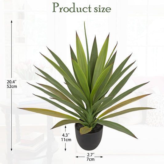 Briful Agave Plant Artificial 20.4'' Faux Agave Plant with Black Pot Outdoor Fake Tropical Plants for Home Office Room Table Garden Front Porch Decor
