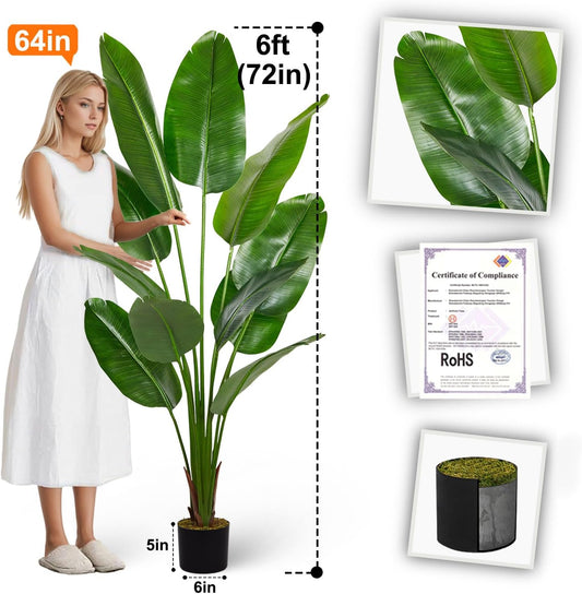 Aveyas 6ft Artificial Bird of Paradise Tree for Home Decor, 6 Feet Faux Floor Plant Fake Silk Banana Leaf Tropical Trees with Pot for Indoor Outdoor House Living Room (6 ft Tall)