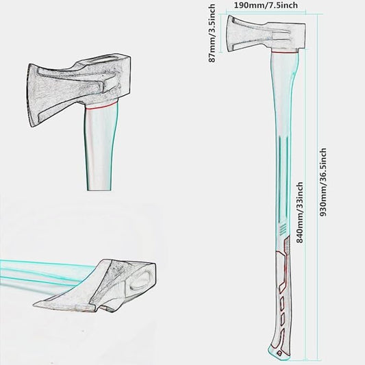 36" Splitting Axe, Chopping Axe|Splitting Maul for Firewood,|6.8Lbs Heavy Duty Forged Carbon Steel, Fiberglass Composite Handle & Ergonomic Anti-Slip Grip