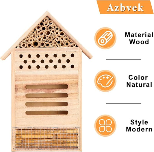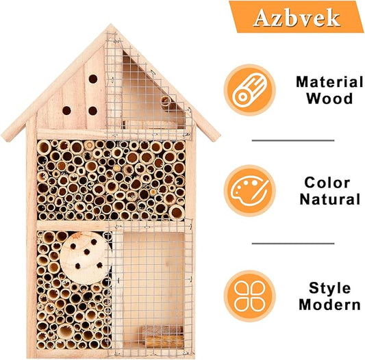 Wooden Insect House Hotel for Bee, Butterfly, Ladybirds, Beneficial Insect Habitat, Bug Hotel Garden 11.7" x 7.7" (A)