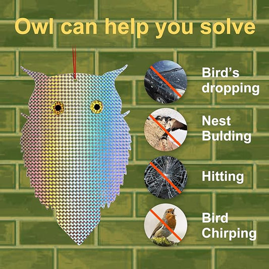 OFFO Owl Decoy to Scare Birds Away (No Bells) Bird Deterrent Device for Woodpecker Pigeon 2 PCS Plastic Hanging Outdoors Reflective Keep Birds Away Home and Garden