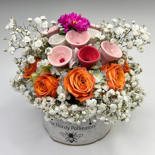 5 Pack, Bee Watering Station, 100% Handmade Porcelain, Bee and Butterfly Feeder for Garden, Outdoor Feeders for Thirsty Pollinators, Plastic Free, Bee Attracting Glaze (5, Sweetheart Pink)