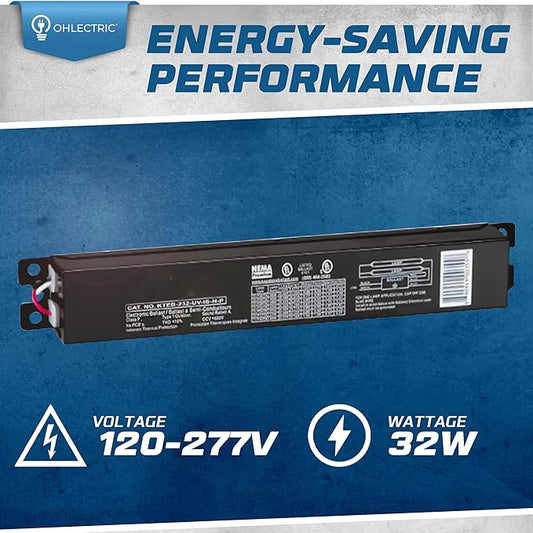 OHLECTRIC 2 Pack - Replacement for Keystone KTEB-232-UV-IS-H-P 2 Lamp T8 Electronic Fluorescent Ballast with High Light Output | 120-277V Input with Instant Start Operation | 1.18 Ballast Factor