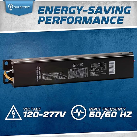 OHLECTRIC Replacement for Keystone KTEB-232-UV-IS-N-P 2 Lamp T8 Electronic Fluorescent Ballast with Normal Light Output | 120-277V Input with Instant Start Operation | 0.88 Ballast Factor, UL-Approved