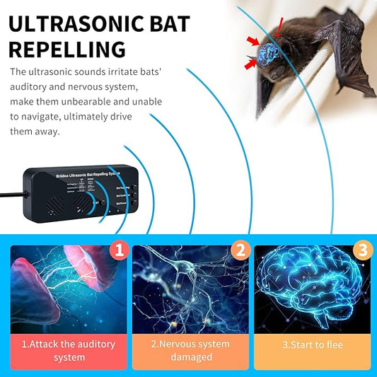 Ultrasonic Bat Removal, Briidea Bat Away System, Demands Bats to Flee, Human and Pet Safe