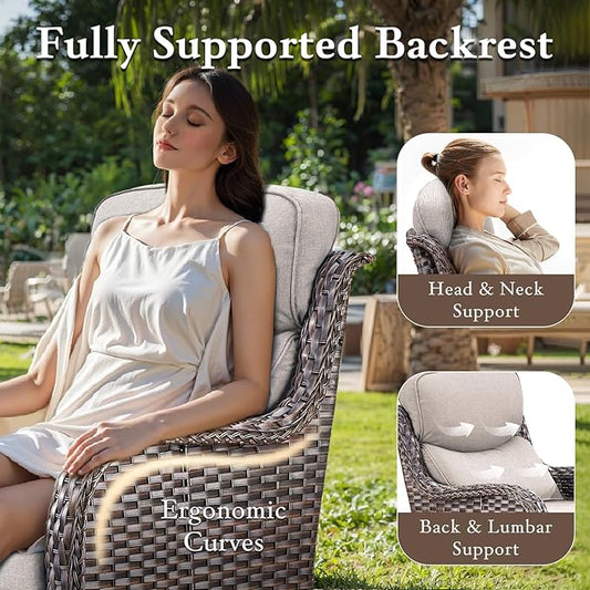 Luxury Outdoor Swivel Rocker Patio Chairs, High Back Swivel Patio Chairs with Side Table & 6-Inch Thick Cushions, Wicker Outdoor Bistro Set for Porch, Yard, Deck, Poolside, Brown/Beige