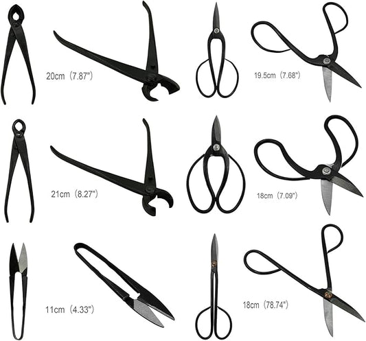 Voilamart 12 Pcs Gardening Bonsai Tool Sets Carbon Steel Garden Plant Trimming Kit Scissor Cutter Shear Heavy Duty Nylon Case Outdoor Entrenching Tools