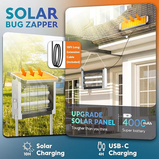 Solar Bug Zapper, 4500V IP66 Waterproof Outdoor Portable Rechargeable Electric Mosquito Killer for Camping, Patio, Garden Mosquito Zapper for Outdoor Use