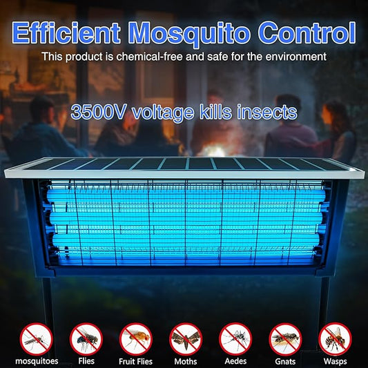 Large Solar Bug Zapper with High Powered for 3500 sq.ft, Portable Outdoor Mosquito Zapper, Rechargeable Electric Fly Zapper for Patio Garden Backyard RV Camping Pond Pest Control