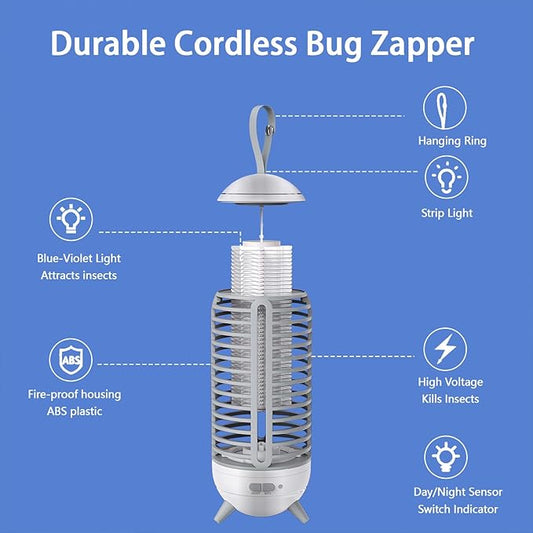 Bug Zapper Outdoor Rechargeable 2 in 1 Wireless Mosquito Killer Lamp 2500mAh Electric Trap Ideal Bug Zapper Indoor for Patio, Home, Backyard, Yard, Garden, Campsite (White)