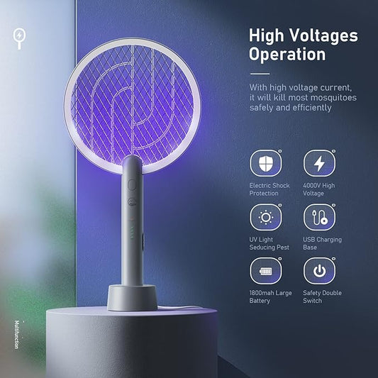 Electric Fly Swatter Racket, Mosiller 4000V 2 in 1 Bug Zapper with USB Rechargeable Base, Powerful Mosquitoes Trap Lamp & Fly Killer with 3-Layer Safety Mesh for Home, Indoor, Bedroom, Patio (2 Pack)