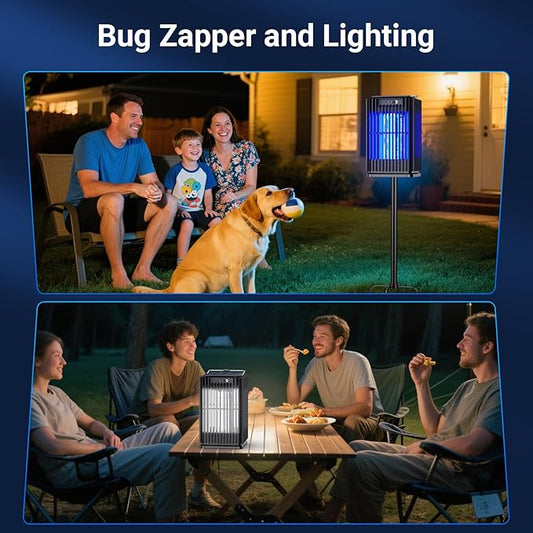 Solar Bug Zapper Outdoor Waterproof, Solar Mosquito Zapper Outdoor with Ground Bracket, Cordless Fly Zapper with Illuminated Light, 5000mAh Rechargeable Mosquito Killer